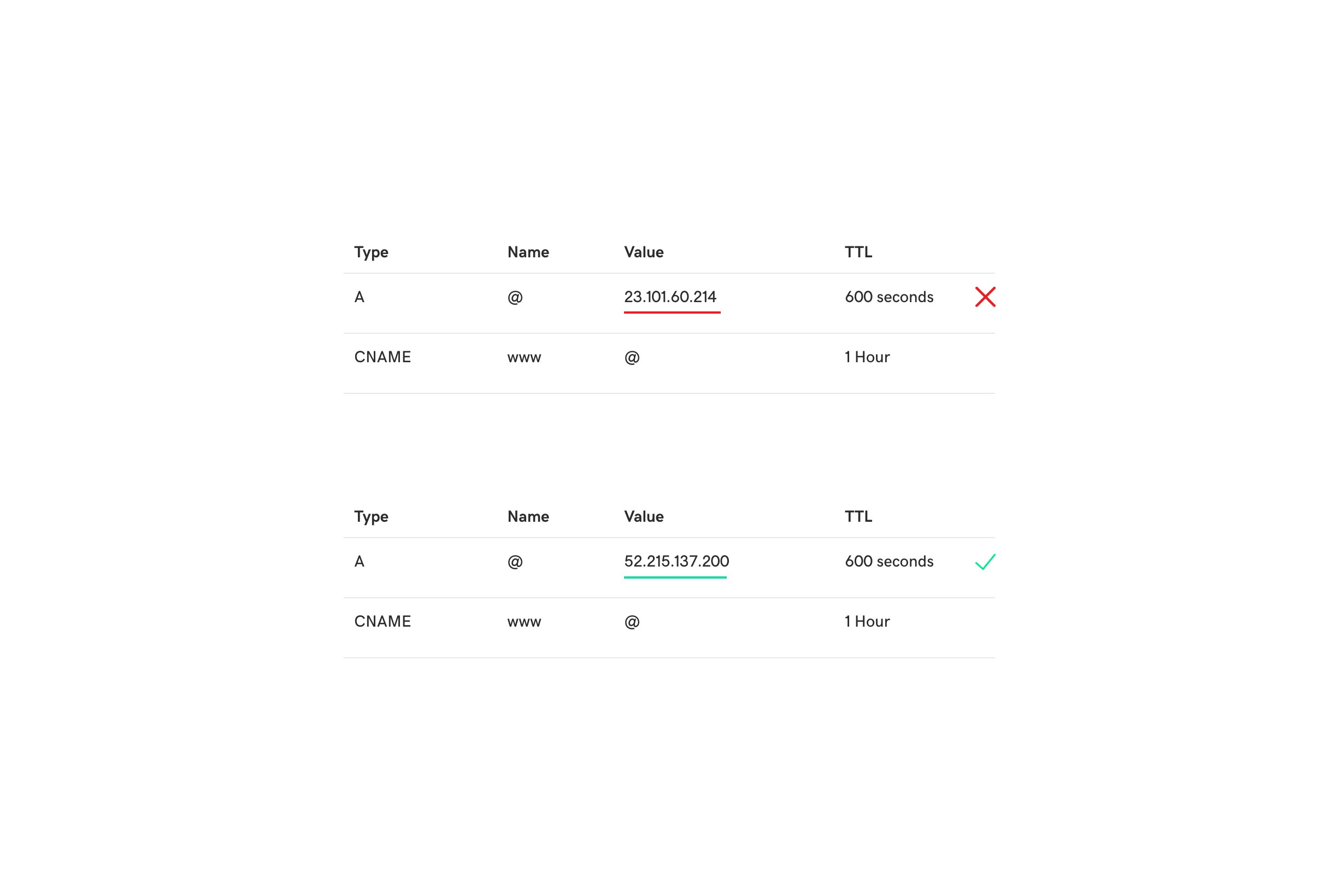 Log in to your domain provider's admin tools, find the DNS management tool and change any A Records that are set to 23.101.60.214 to 52.215.137.200