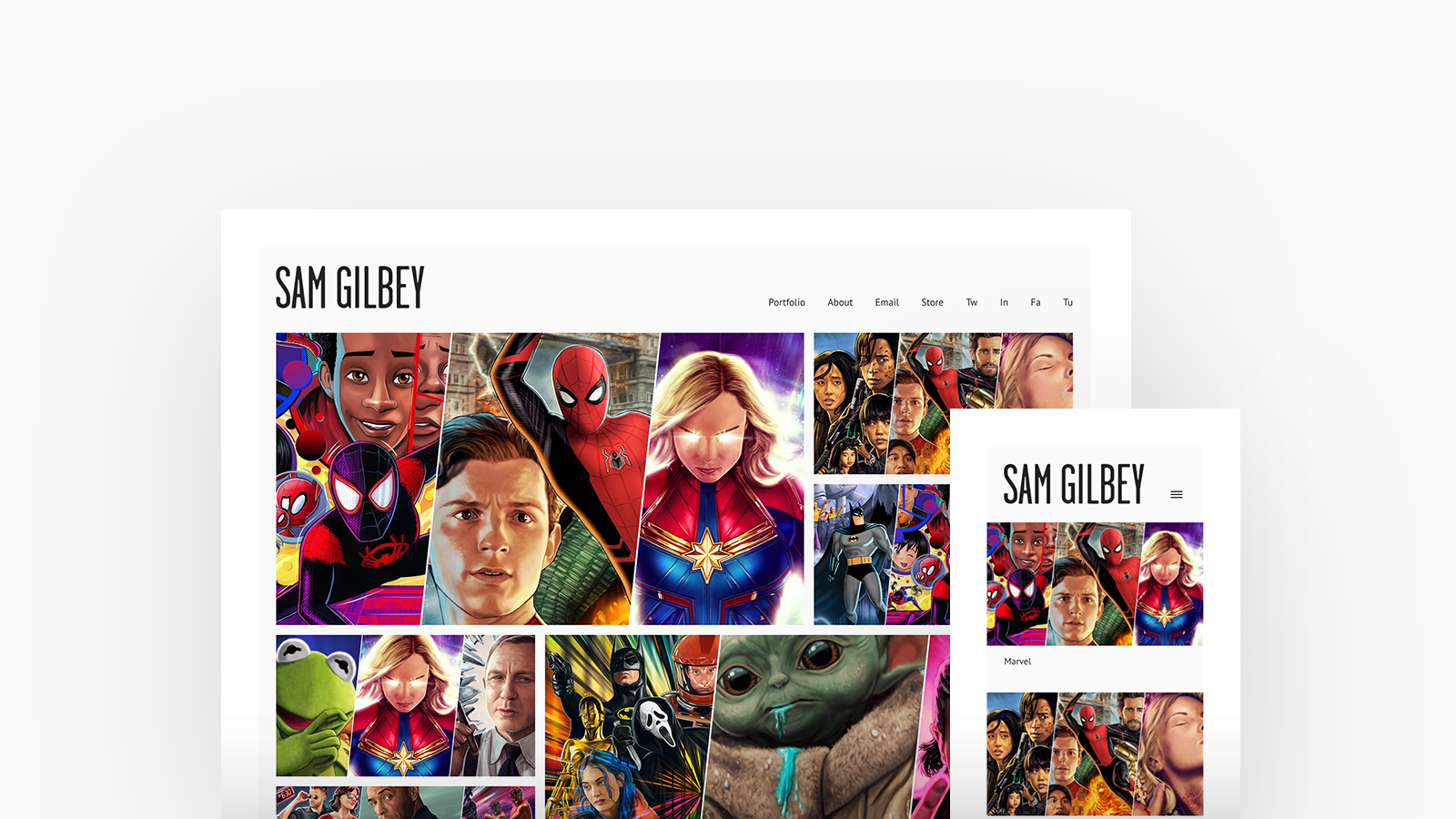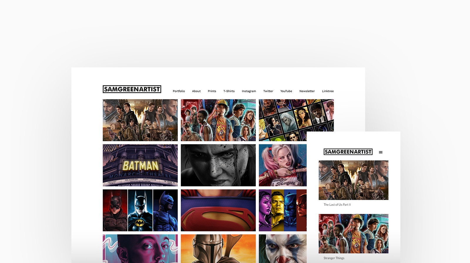 Sam Green is an Illustrator and Graphic Artist based in London, UK, specialising predominantly on movie poster art, comics and other pop culture creations. Sam is using Calico, with a thumbnails homepage and stacked project layout.