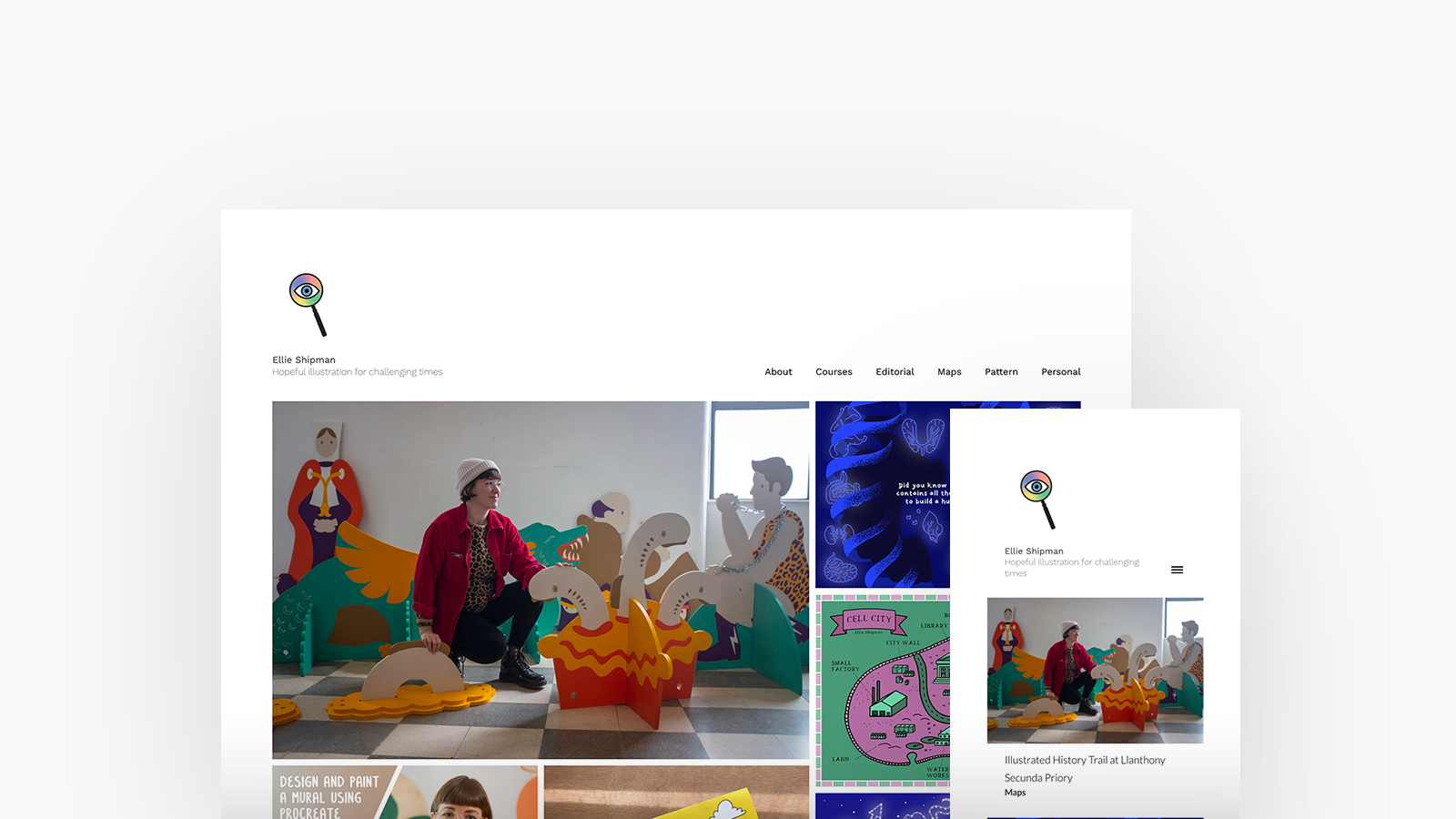 Ellie Shipman is an illustrator and artist based in Bristol, UK, and working globally. She creates playful, bold illustrations and patterns exploring sustainability, women and wellbeing for editorial, research and campaigns. Ellie is using Calico, with a spotlight homepage and stacked project layout.