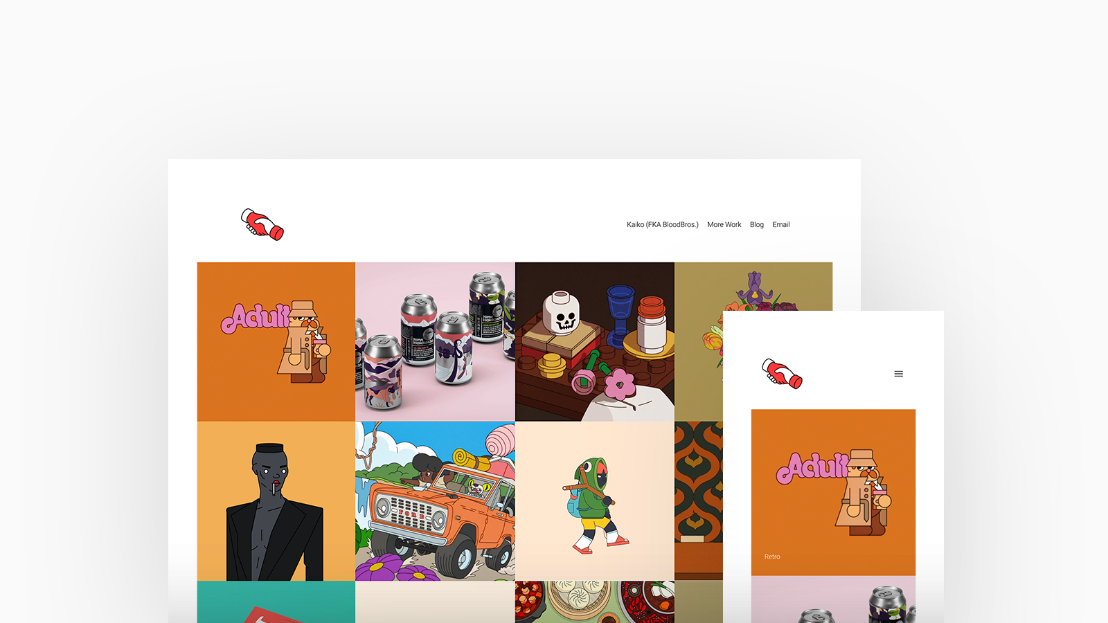 Blood Bros is an Illustrator and Animator based in Tokyo, Japan whose background in graphic design informs his illustration work. He enjoys the challenge of transforming complex ideas into humorous images. Blood Bros is using Airdura, with a blocks homepage and stacked project layout.