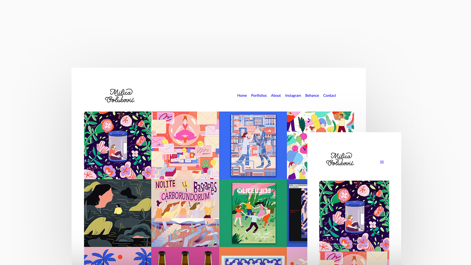 Milica Golubović is a visual artist and illustrator. She creates poetic digital imagery with focus on atmosphere, color and texture, and draws inspiration from nature, the Mediterranean seaside and everyday life in general. Milicia is using Airdura, with a square blocks homepage and stacked project layout.