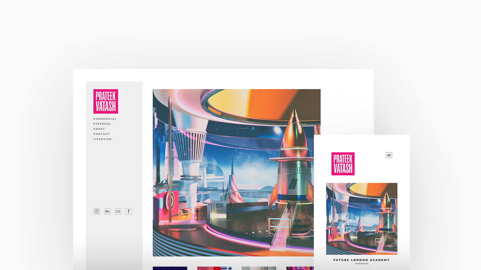 Prateek Vatash is a Graphic Artist and Designer based out of Bangalore, India. His work, primarily uses a blend of 3D and 2D media, bringing together forms and content taken from his multiple interests in the fields of typography, architecture, interior design, and the occult. Prateek is using Canvas, with a square featured thumbnails homepage and strip project layout.