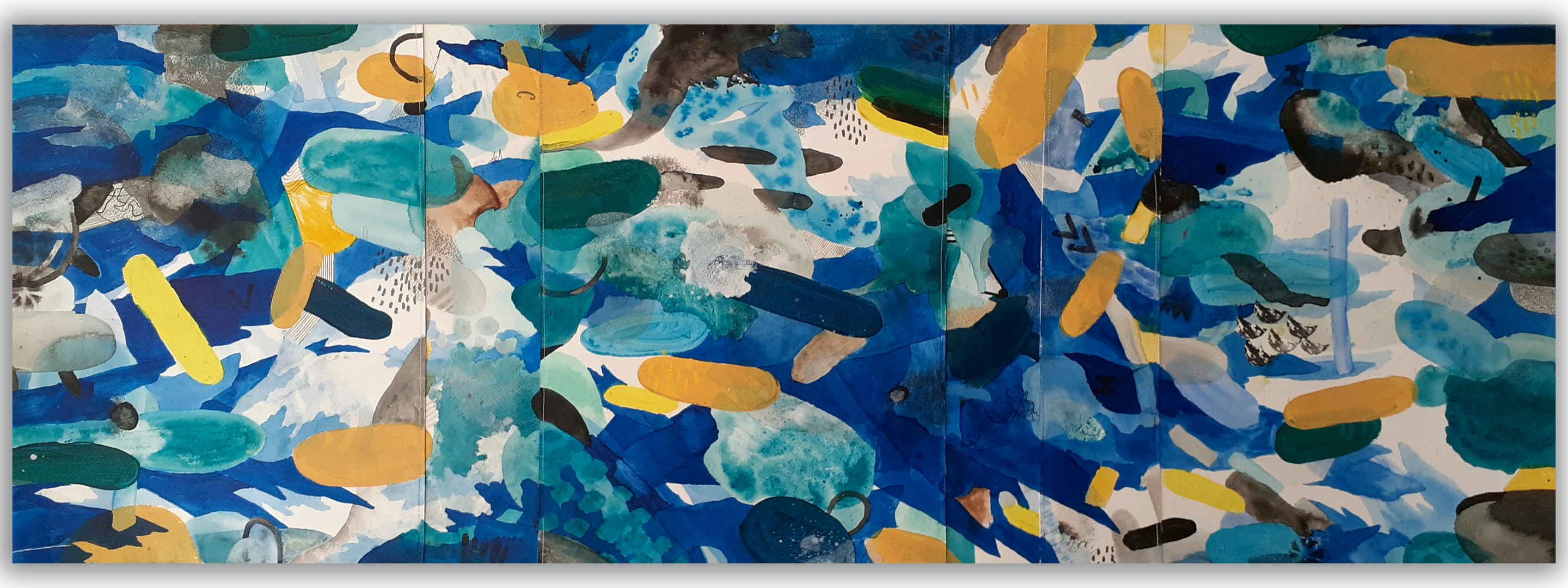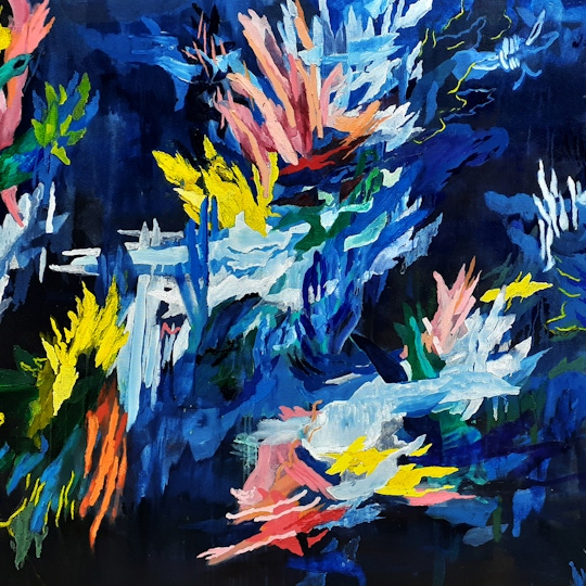 Acting like ephemeral mirages, the artist's ambition is to explore and capture the intertwining and transcendent quality of the unseen. Capturing momentary feelings in a visual form, these investigations are both deeply personal and also often made in response to his immediate environment. With playful bold swathes of colour, texture and exuberant mark making, there is a push and pull the viewer experiences, directing the eye and stimulating the senses.