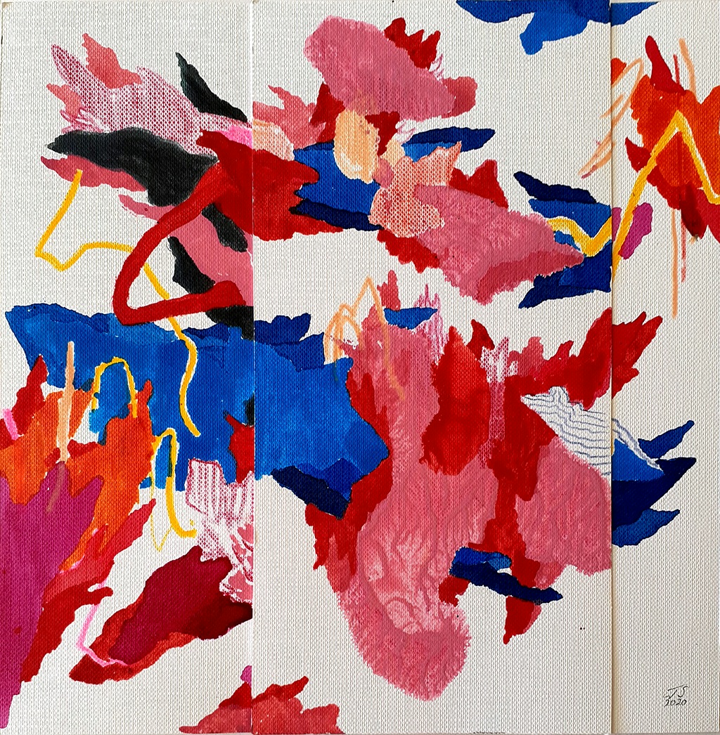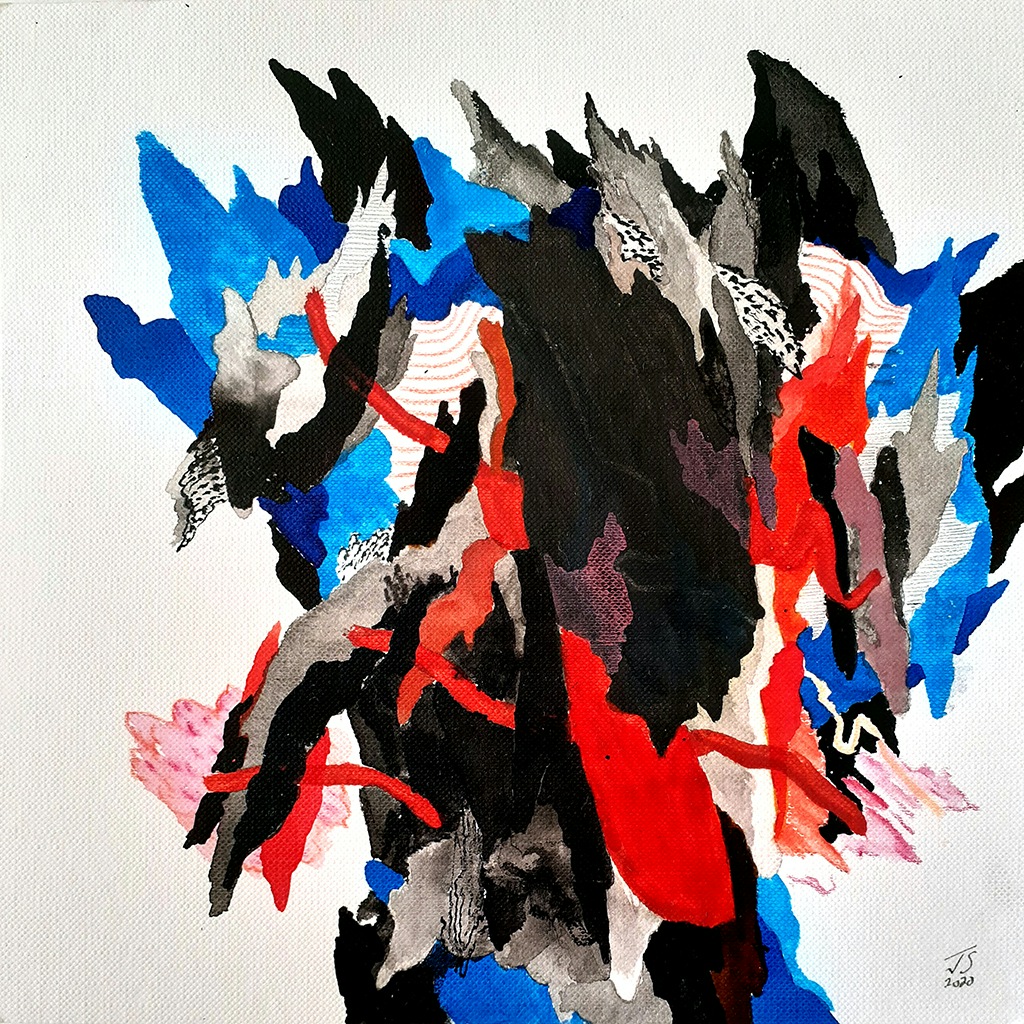 Justin Southey: Although I leave meaning up to the viewer to interpret, I always want people to feel something and have an emotional experience or connection with my works. In this particular case I wanted the feeling of freedom and boldness, standing in stark contrast to the fear and depression that so many are experiencing at present. The piece was created for a show of smaller works (20cmx20cm), which was pretty challenging to do in a weird way as I am far more comfortable in the 2m x 2m size range. Most of my previous attempts at smaller works have been exiled to a dusty corner of my studio for a year or two as try to find a way to resolve them. I somehow just made them way too busy and try to include far too much information. All that said, I was really pleased with the way that these came out.