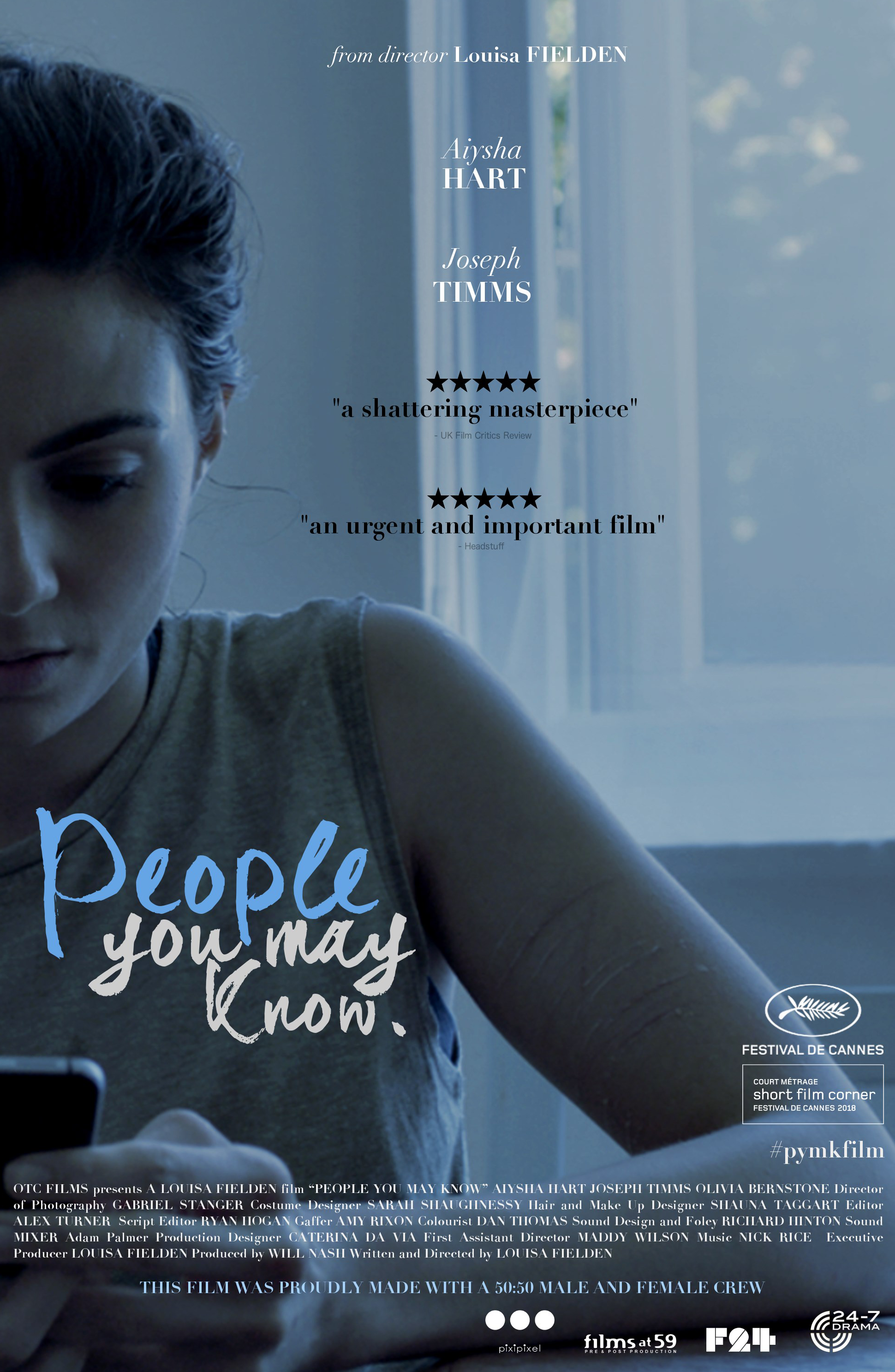 Louisa Fielden is a multi-award winning director of television drama and music videos. She recently selected for Channel 4’s Emerging Director Talent Scheme in association with Directors UK and is a 2018 BAFTA Crew member. Her latest short film 'People You MaVisit Louisa Fielden's website