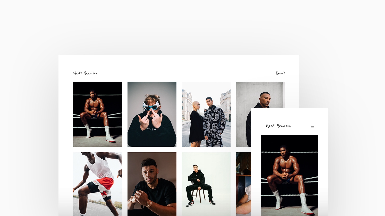 Matt Pearson is a London based Photographer who has captured the attention of some of the best known names in entertainment and sports. He has a keen interest and grounding in sport and exercise, allowing him to capture movement and people in his own unique way. Matt is using Calico, with a thumbnails homepage and stacked project layout.