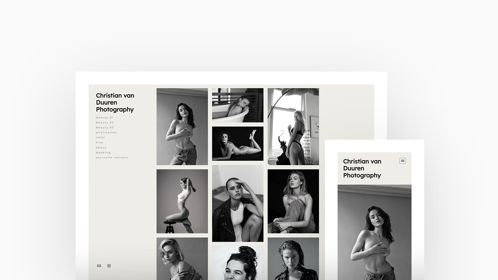 Based in the Netherlands, talented director and photographer Christian van Duuren's series of black and white portraits exude elegance and display the beauty of forms and tones. Christian is using Canvas, with a thumbnails homepage and lightbox project layout.