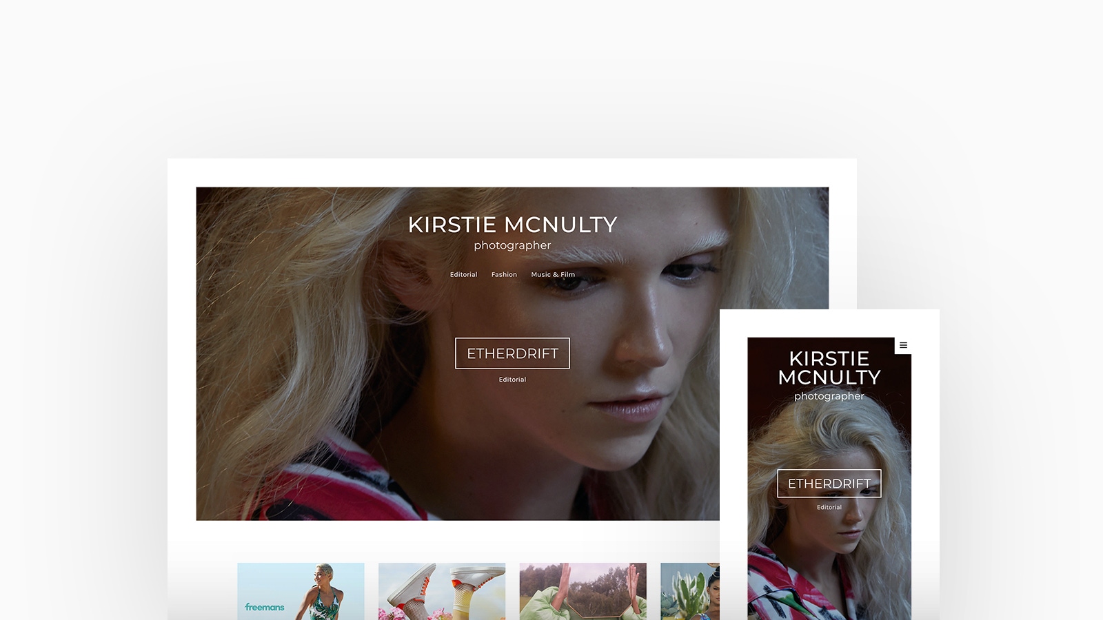 Kirstie Mcnulty is a Fashion and Editorial Photographer residing in Manchester, UK. She has captured for fashion brands JDW Fashion and SimplyBe along with having her work is featured in magazines such as; Solstice Magazine, Institute Magazine and Dreamingless Magazine. Kirstie is using Tocuyo, with a cover with thumbnails homepage and stacked project layout.