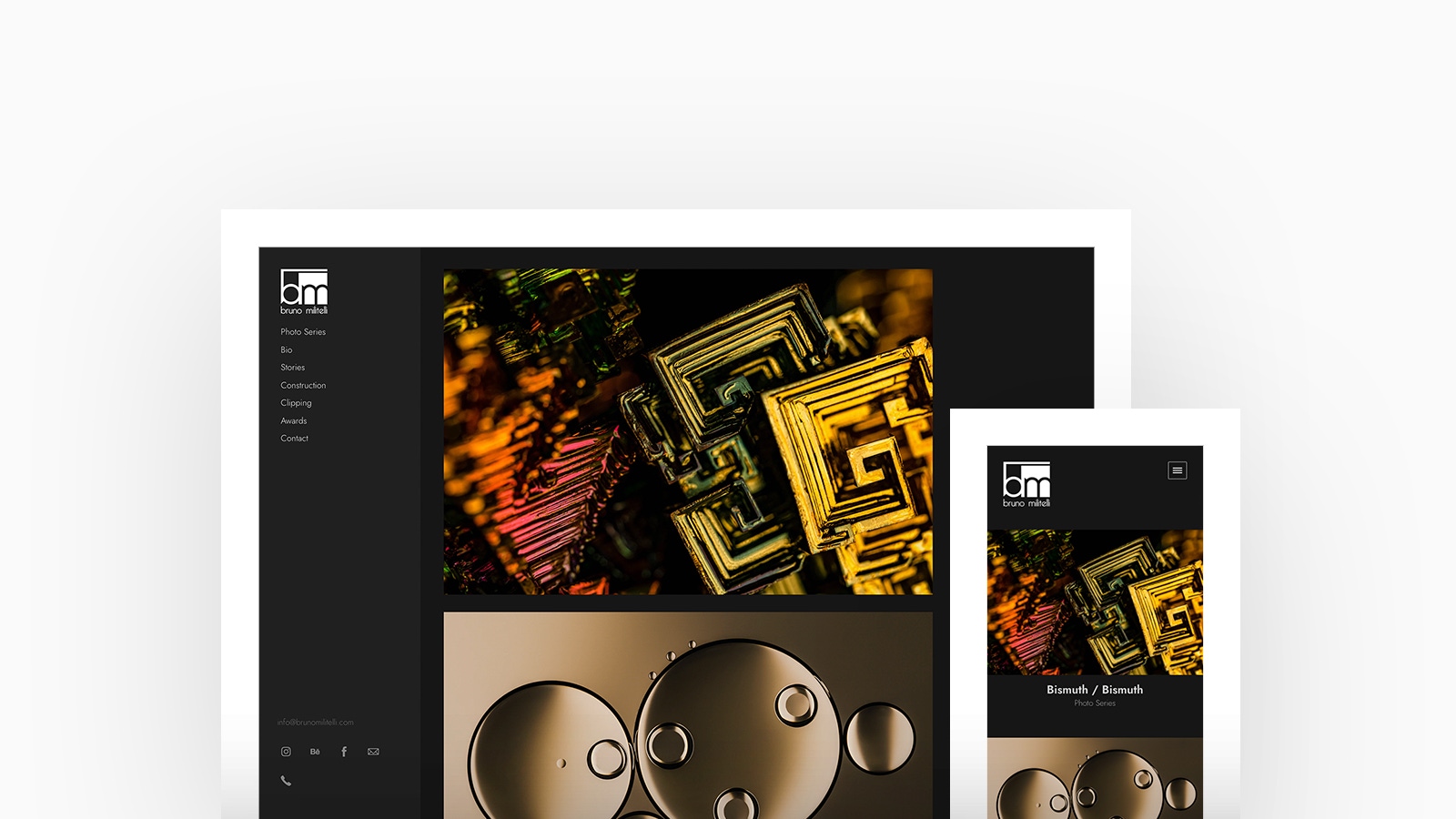 Bruno has a delicate balance between abstraction and allegory and captures nature in its smallest details. Starting from macro photography, he transcends the boundaries of orthologic vision and captures the minutiae of each object photographed. Bruno is using Canvas, with a stacked homepage and slideshow project layout.