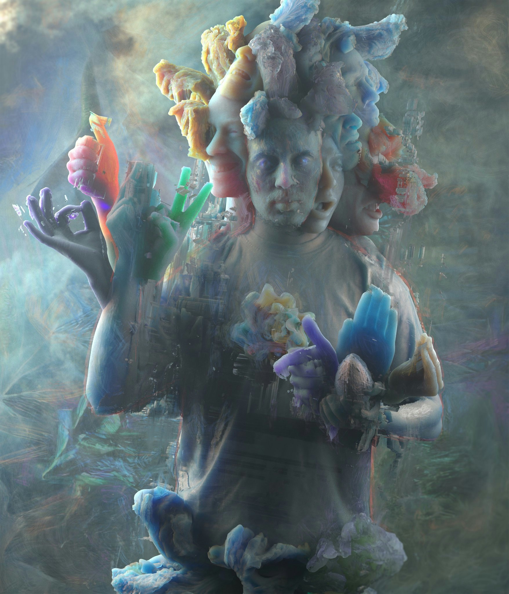 "GI see myself as a medium between the immaterial digital world and the spirit world. I aim to deconstruct the tension between virtual and material planes, between my mixed Ojibwe and settler identities, and between technology and spirituality. I invoke digital beings through sculpting in virtual reality. With my work I invite my viewer to think about the liminal space between the simulation and the subconscious; exploring both the transcendent heights, as well as the ego-dissolving depths of our own minds entangled with technology." —@Nate__Talbot