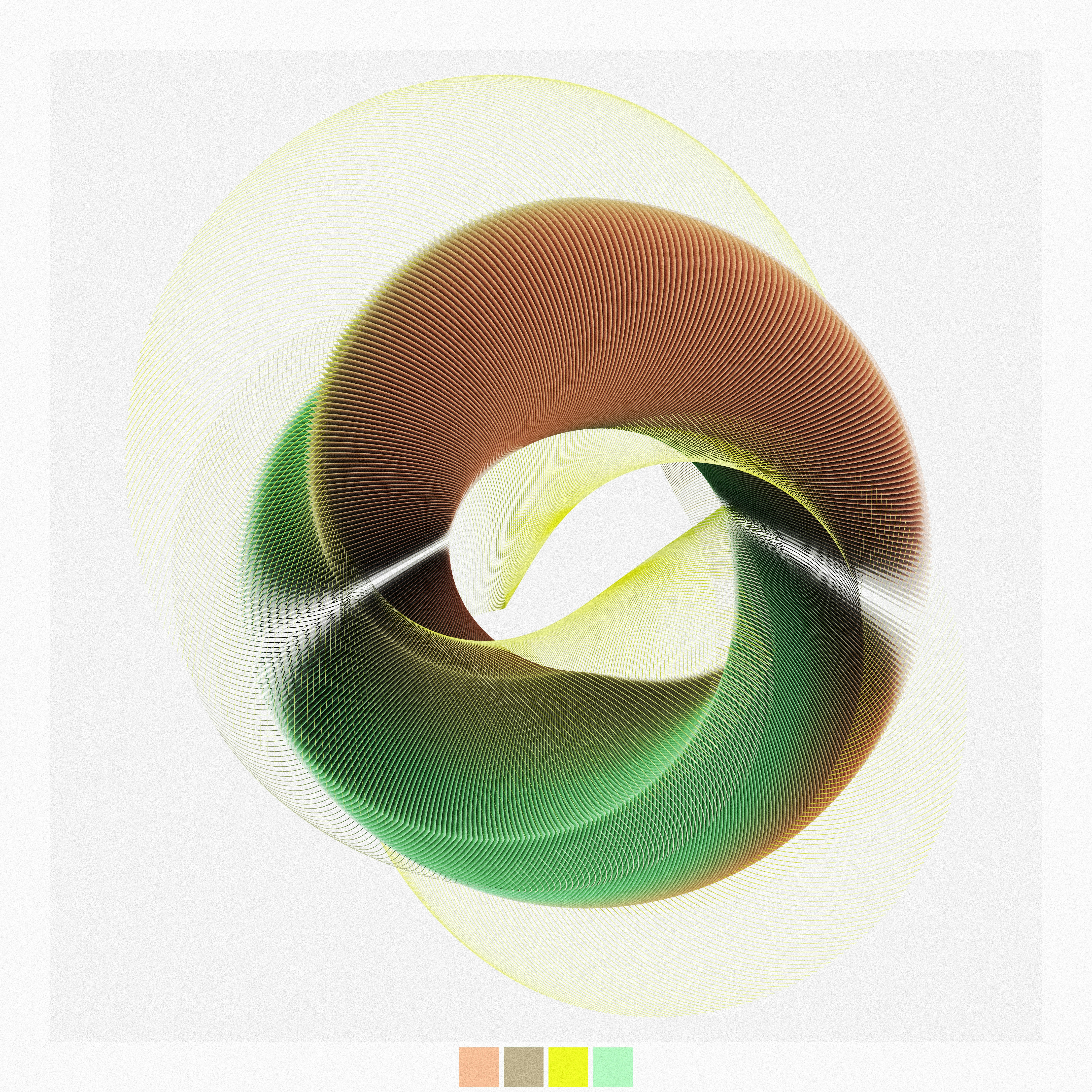 "Aperture is an extension of the Awe series, exploring rotational patterns generated not only by texture manipulation but also through geometry altering. Aperture 09 is a special edition piece, using Sanzo Wada's color combination #317: Light Pinkish Cinnamon, Ecru, Lemon Yellow, Turquoise Green." —@ctlnmsnd