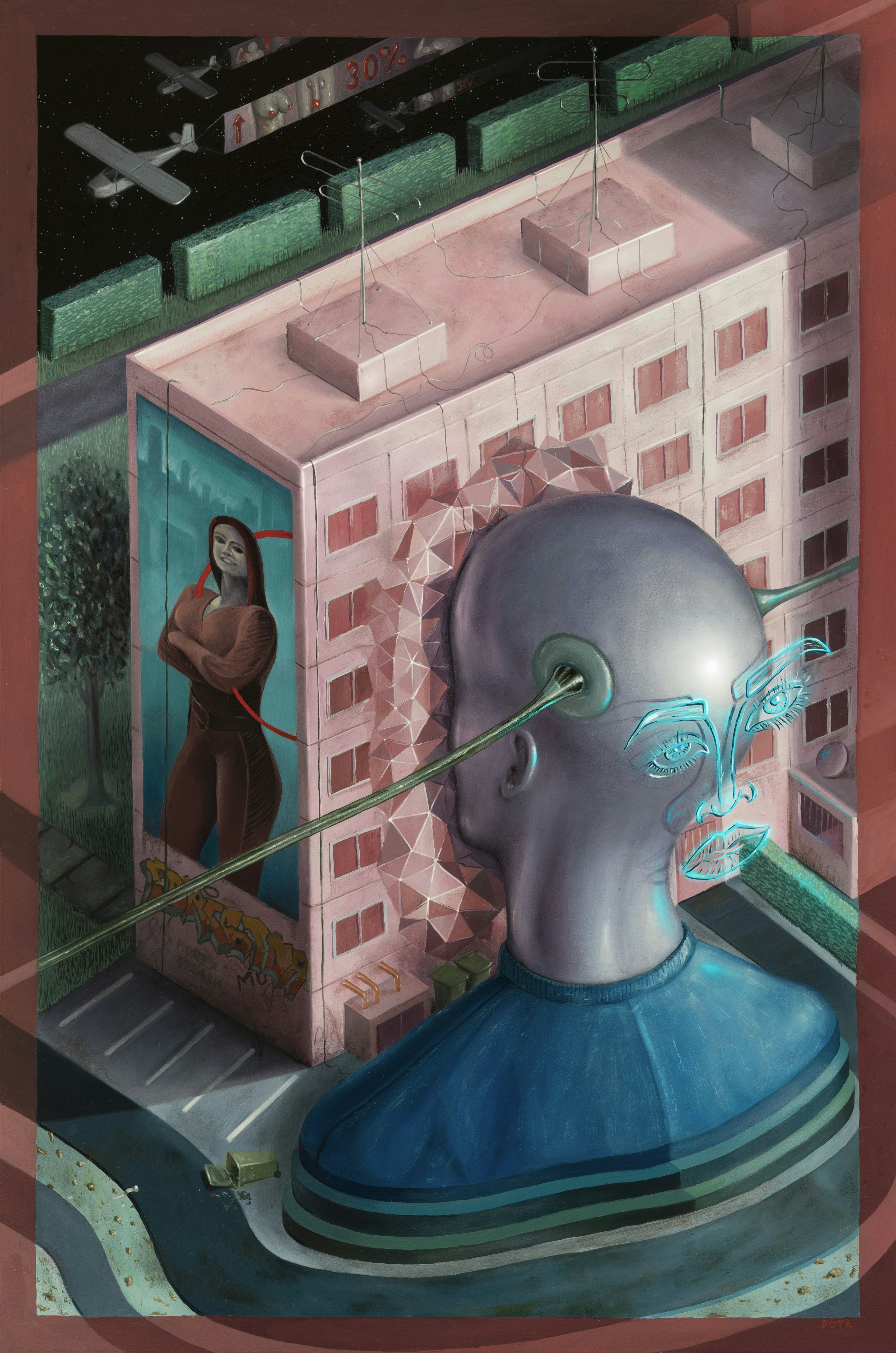 "I've created this painting in 2019 as a part of the "Hedonism Now" series which illustrates the seven deadly sins and their contemporary manifestations. This image describes the pressure of standardized beauty seen around us, from commercials, social media and even face filters." —@VictorFota