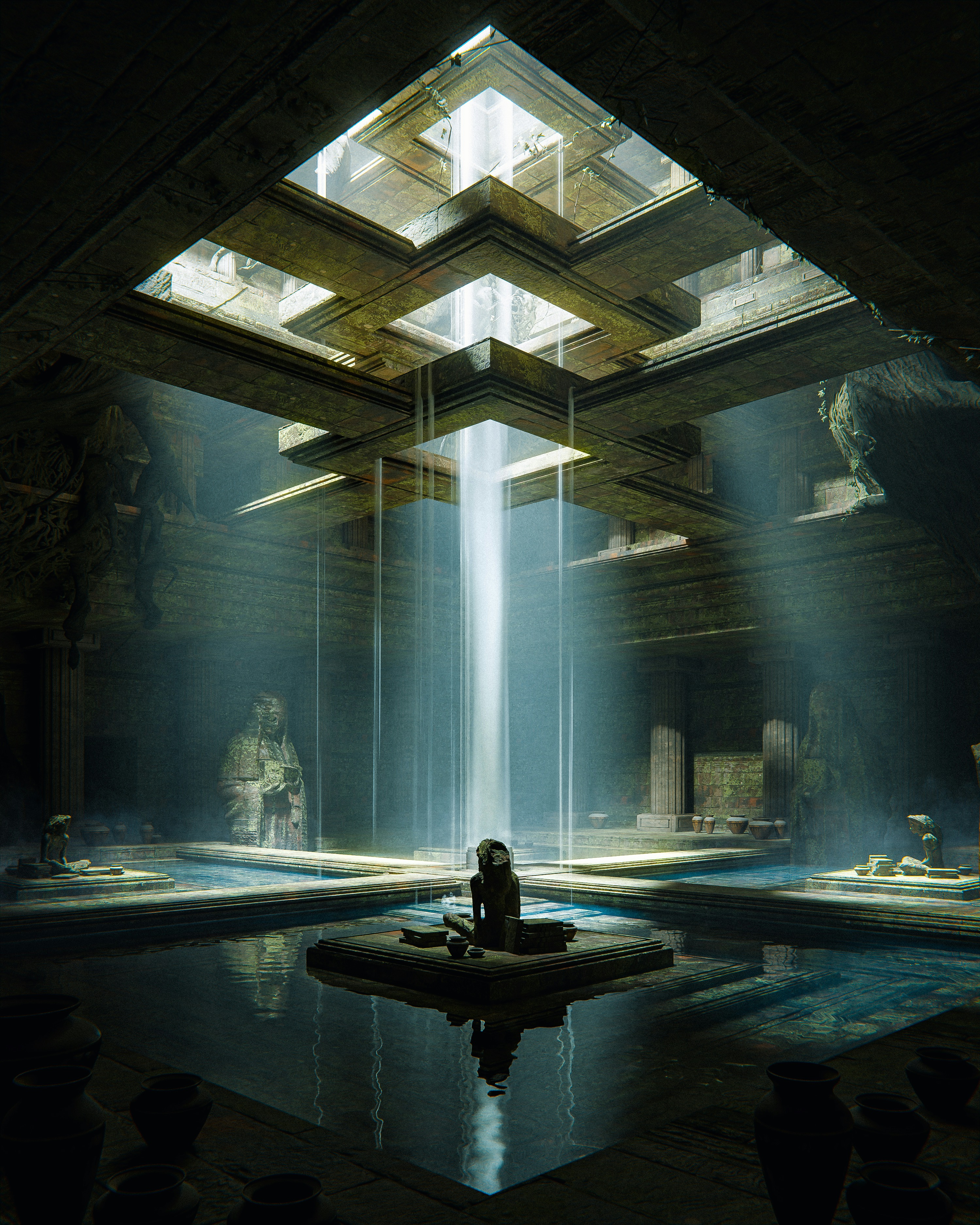 "A forgotten sanctum, flooded and overtaken by nature." —@maxhayart