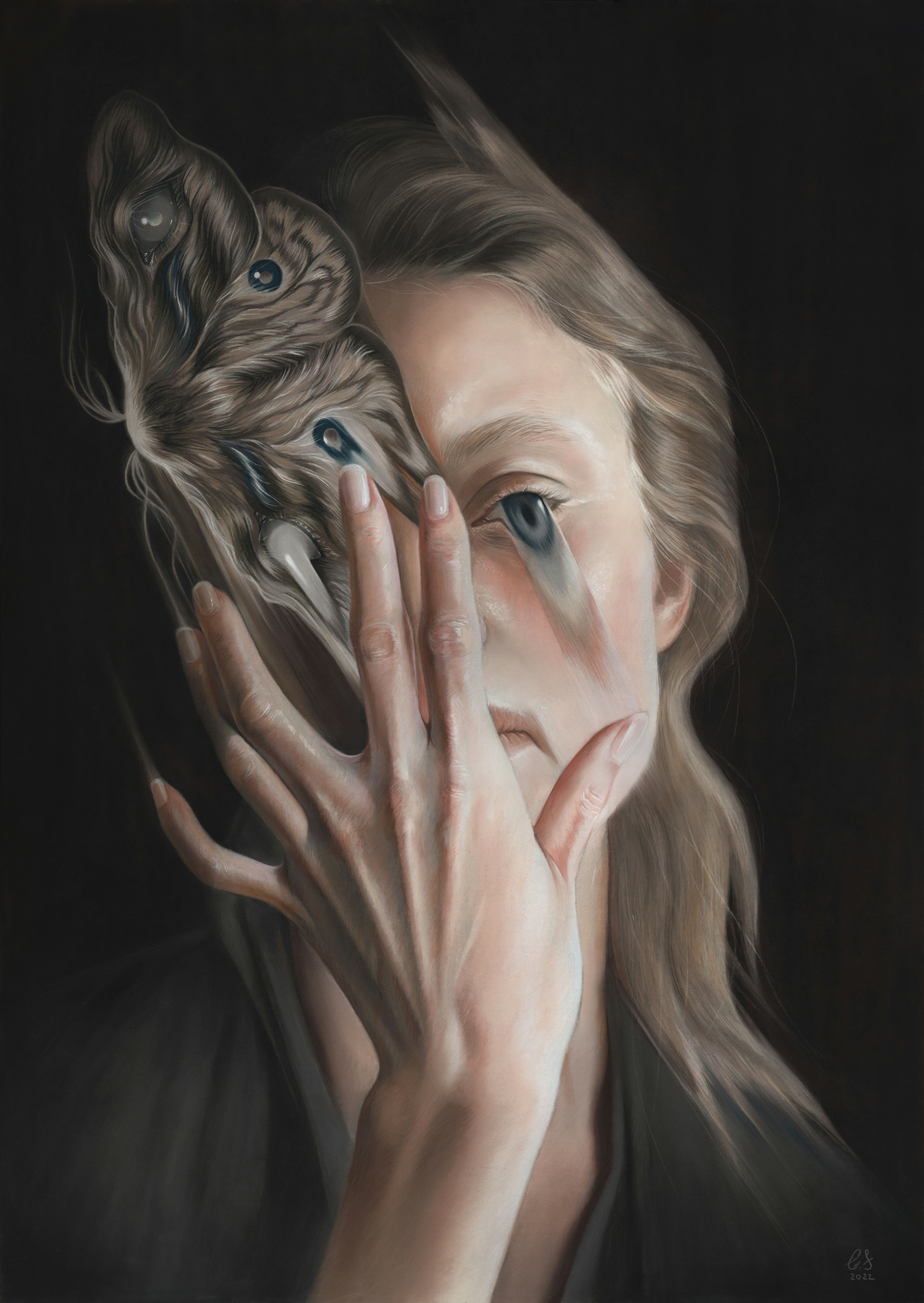 "A pastel portrait destroyed by a movement of the hand. A person deformed by deep introspection. The visual appearance of the internal state at the moment of reflection. Just a moment of the present, not revealing the truth. Which is the truth." —@eugshchukina