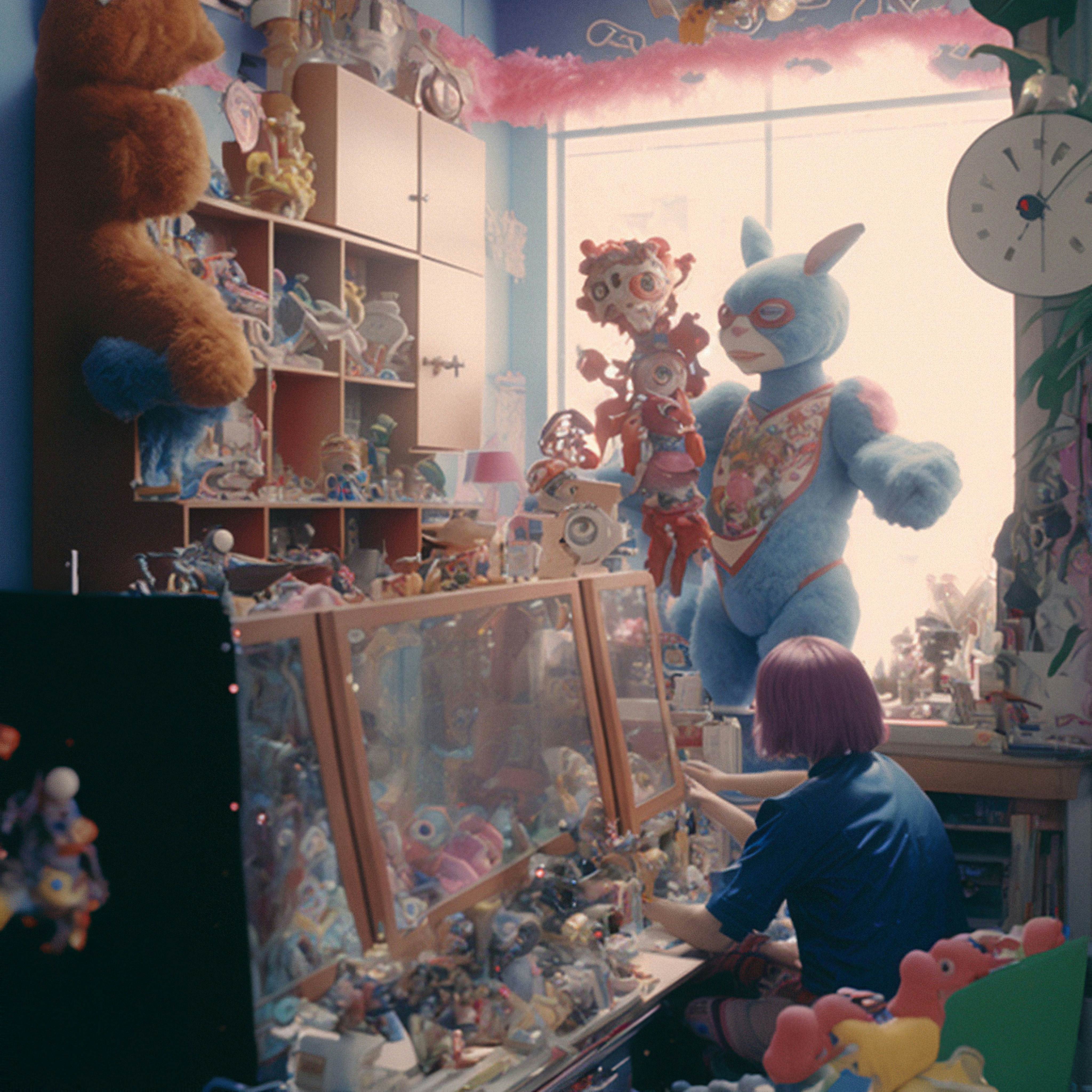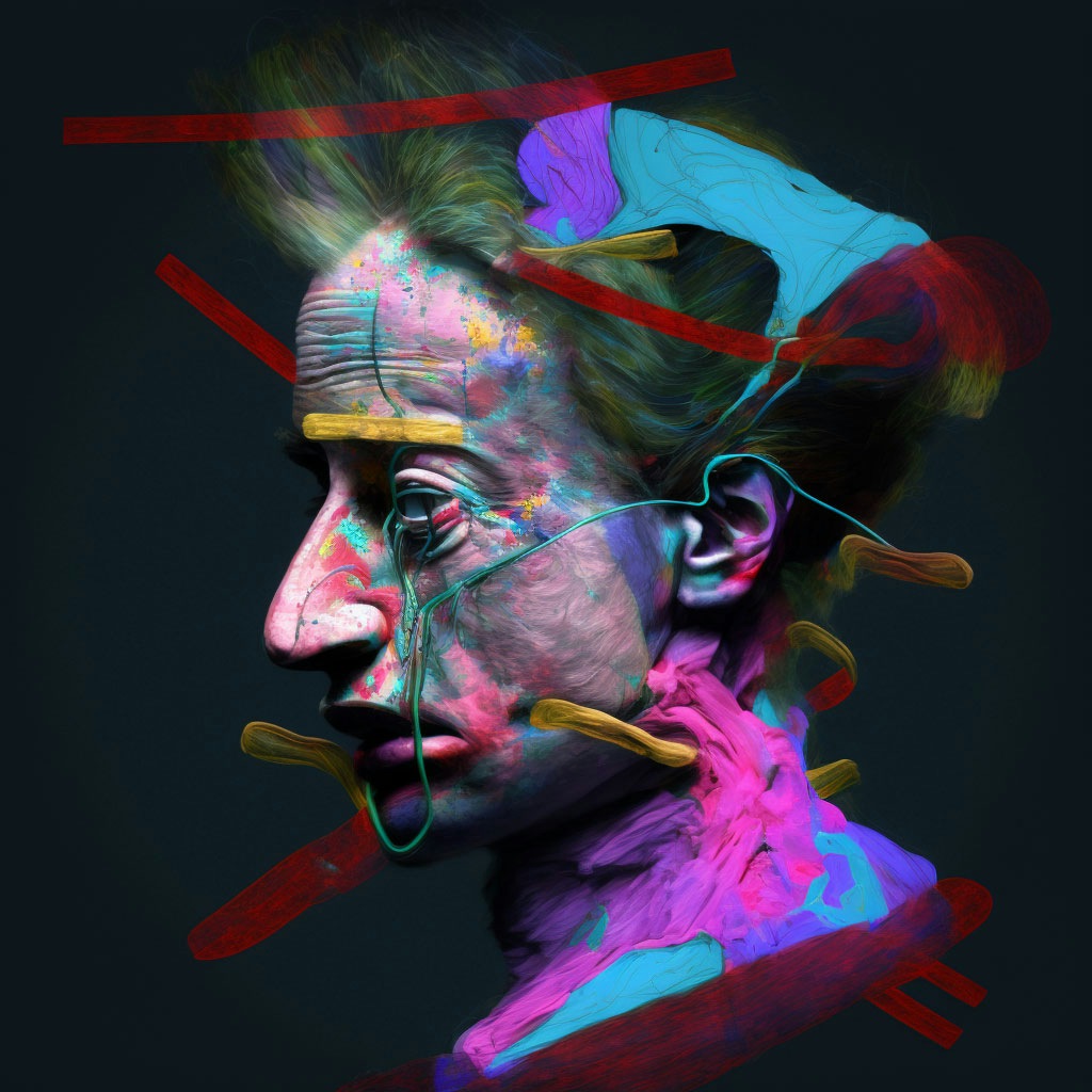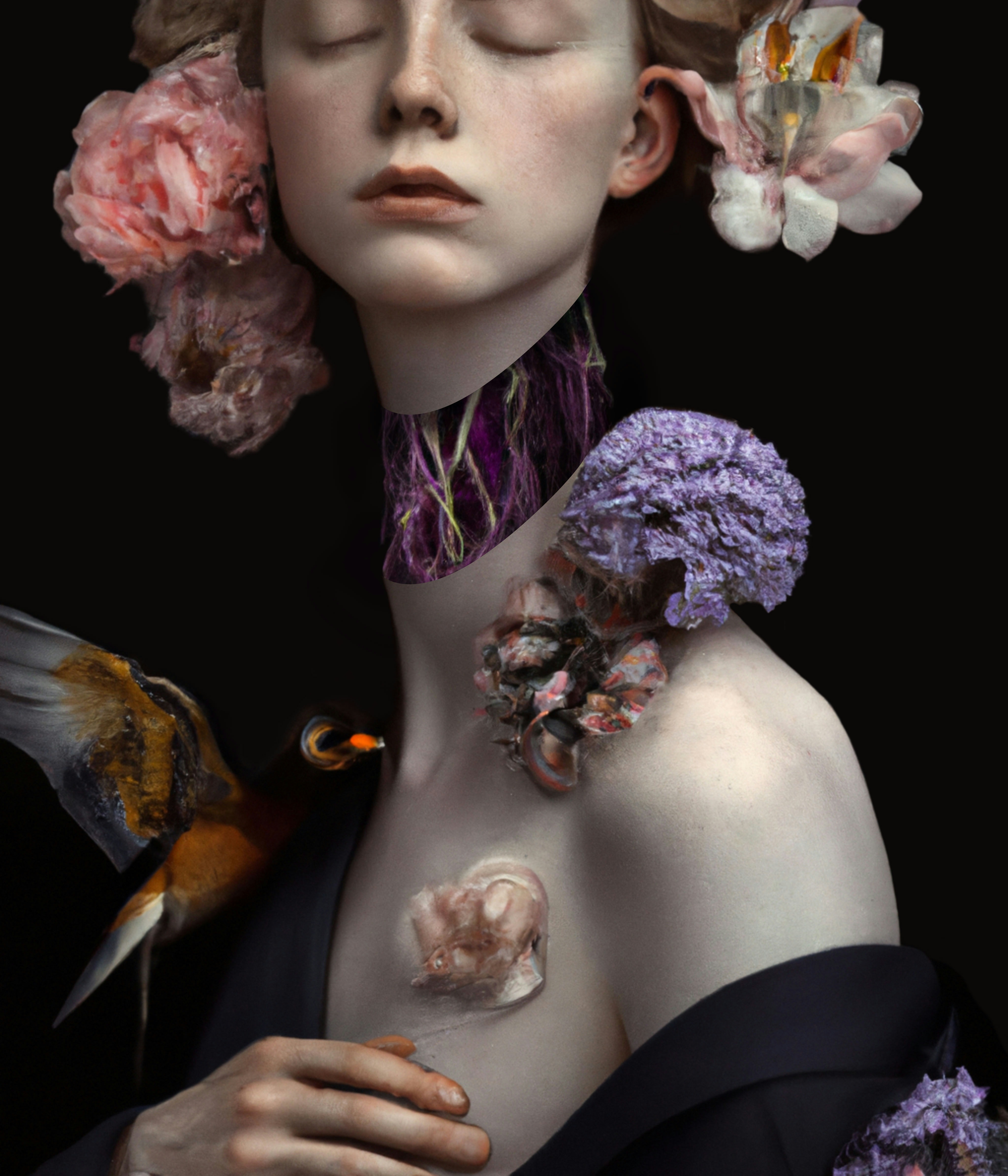 "This is a part of a series of cinematic snapshots venturing into intimate and lonely moments of beings from other realities. Built through a set of dialogues with different AI, hand manipulation, painting, and happy accidents." —@henrydaubrez