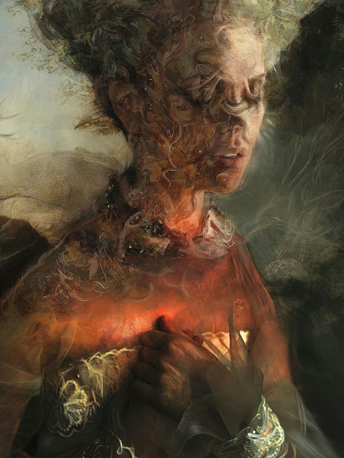 "Three types of fire are distinguished in spiritual alchemical language: The wet fire that provides a constant temperature; The artificial or supernatural fire obtained from acids; the third fire, by which in this dream representation the woman is burned, is the natural fire obtained from combustion, from the ardor of passion." —@MichelePetrelli