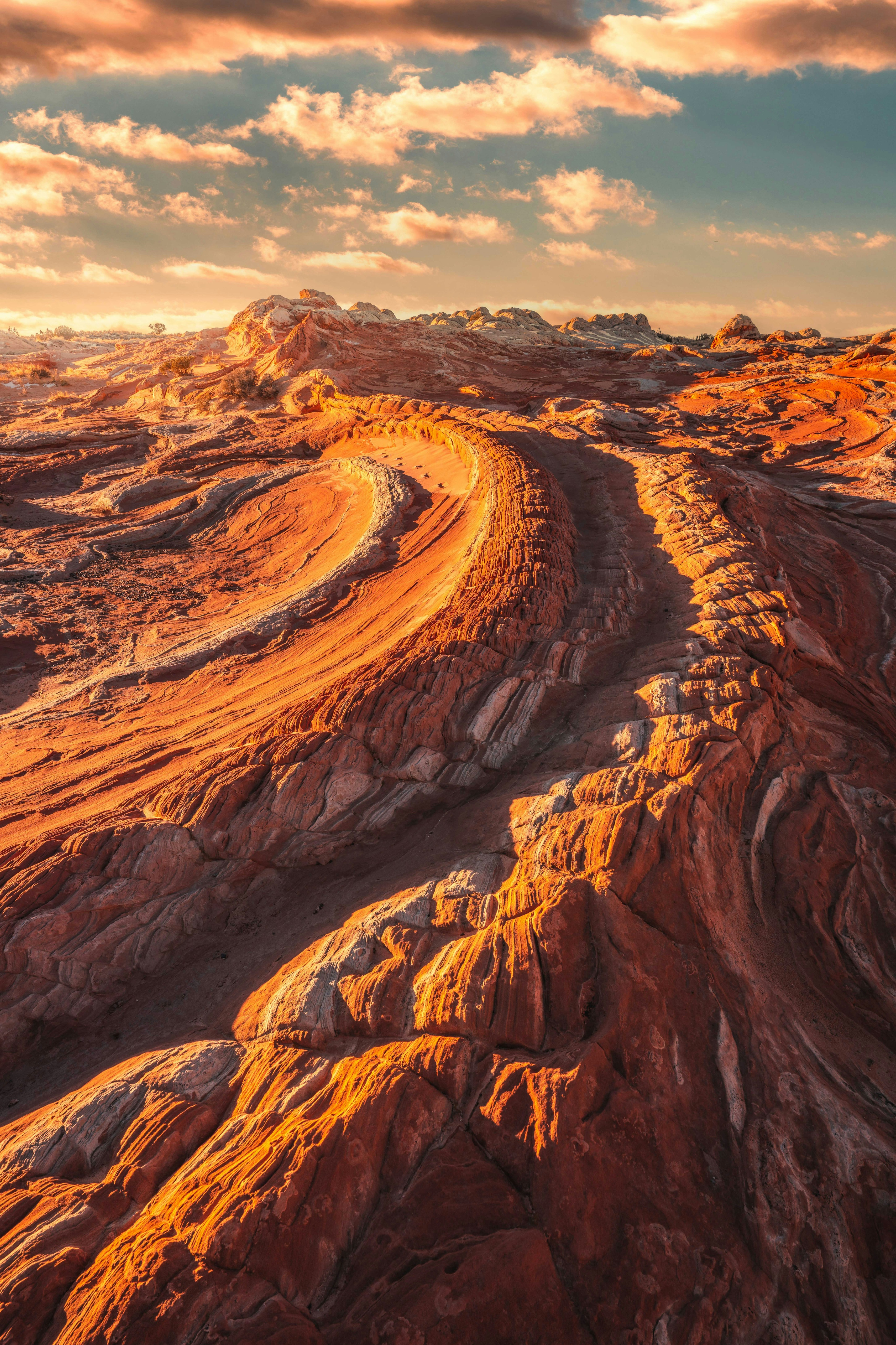 "Embarking on an epic 3000km journey from British Columbia, Canada in our somewhat trusty 23-year-old SUV, we arrived at a uniquely stunning destination in the Southwest. The road leading to this extraterrestrial terrain was slightly perilous, but thankfully, our 4x4 vehicle was up to the task. After a restful night camping nearby, I eagerly rose early to capture the breathtaking textures illuminated by the soft, golden light. The scene was simply spectacular, with a captivating leading line that drew me in - as if a colossal snake had woven itself into the land, creating a landscape unlike any other. Truly a sight to behold!" —@Calibreus_
