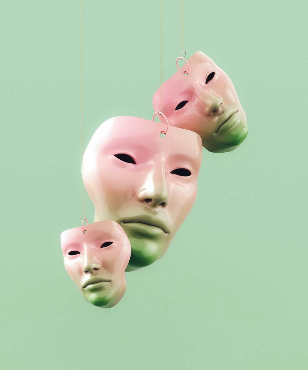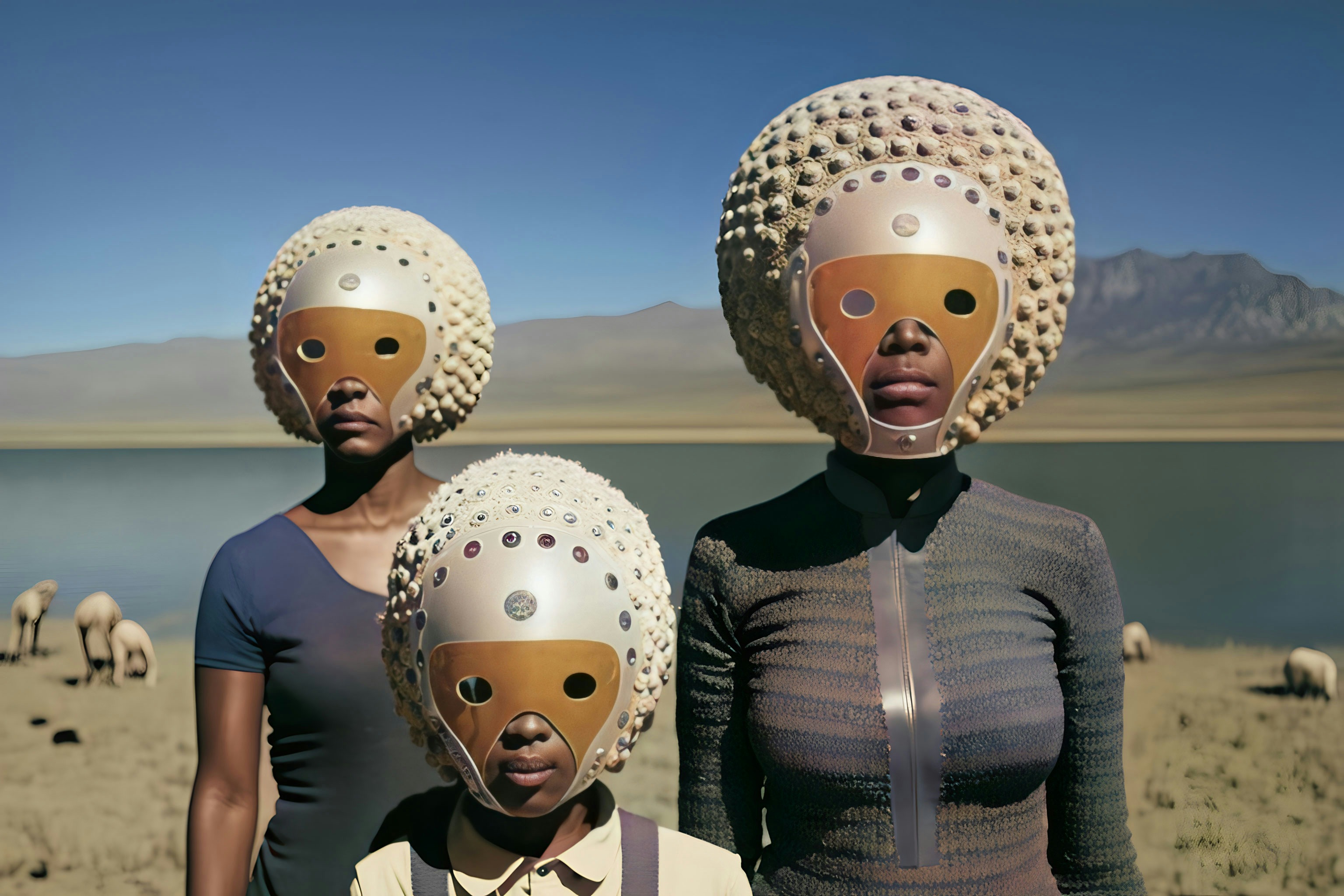 "Series of masked beings created by uniting machine and mind. Based on shapes generated by generative adversarial networks. These intriguing machine created shapes let the imagination run wild in a world that isn't limited by human emotion--creators' vision work as the heart of the machine. Stepping forward with a new medium of art and machine learning, by combining the two as one we can create something unprecedented and fascinating." —@PasanenJenni