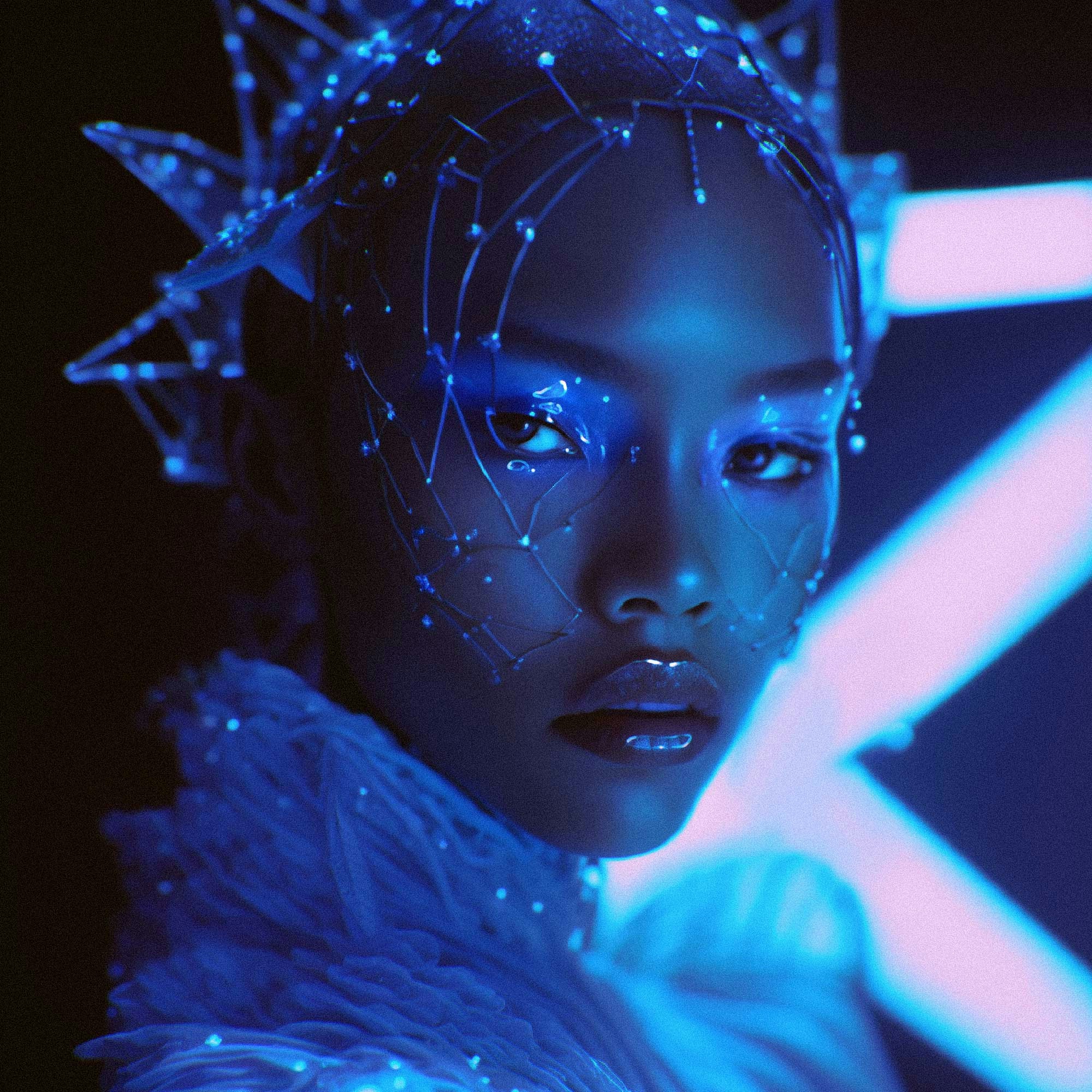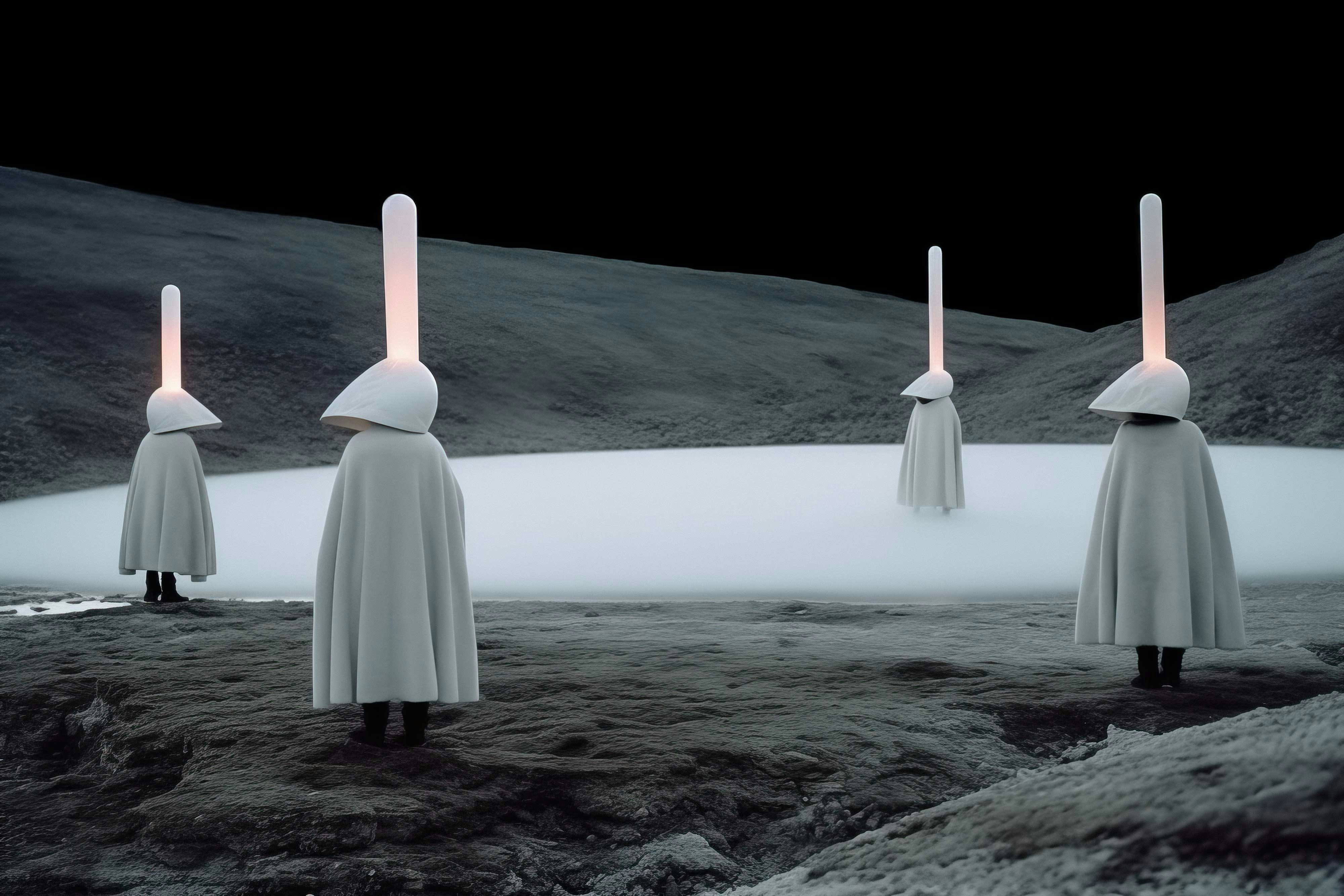 "Hypnagogic hallucinations is a collection of AI-generated images inspired by surreal dreams, unique landscapes, art history and costume history. Some of the pieces will eventually be recreated with photography once the collection is sold out, allowing me to incorporate my fashion design and special effects makeup skills. The collector of this piece will be entered in a raffle to win the print of his choice from the AI project as well as receive an edition of one of the photo versions." —@joelle_lb