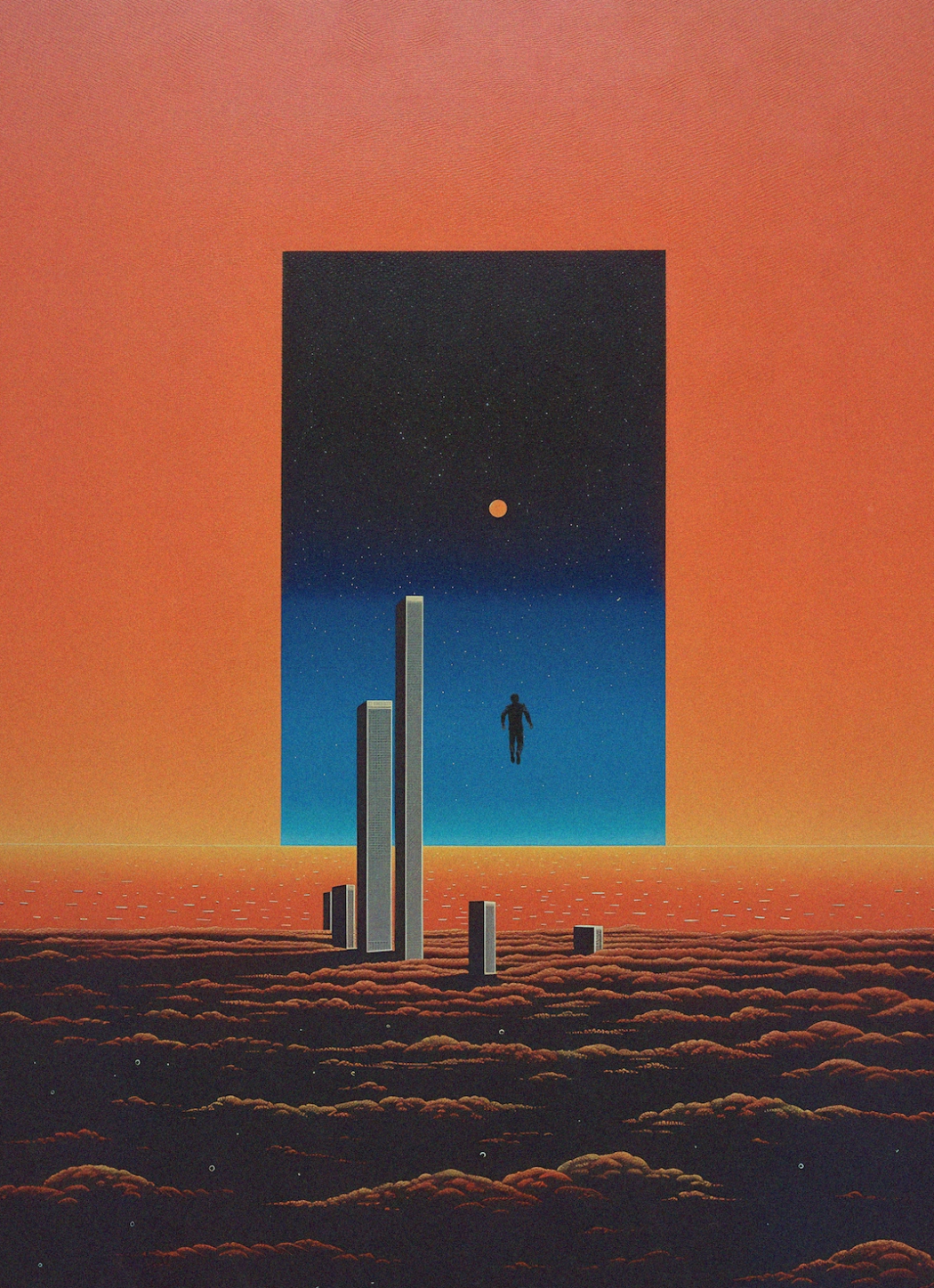 ‘In the dystopian world of the techno-future, where the boundaries between reality and virtuality are blurred, Watcher searches for his reflection in cyberspace and other people.' —@Atmonez