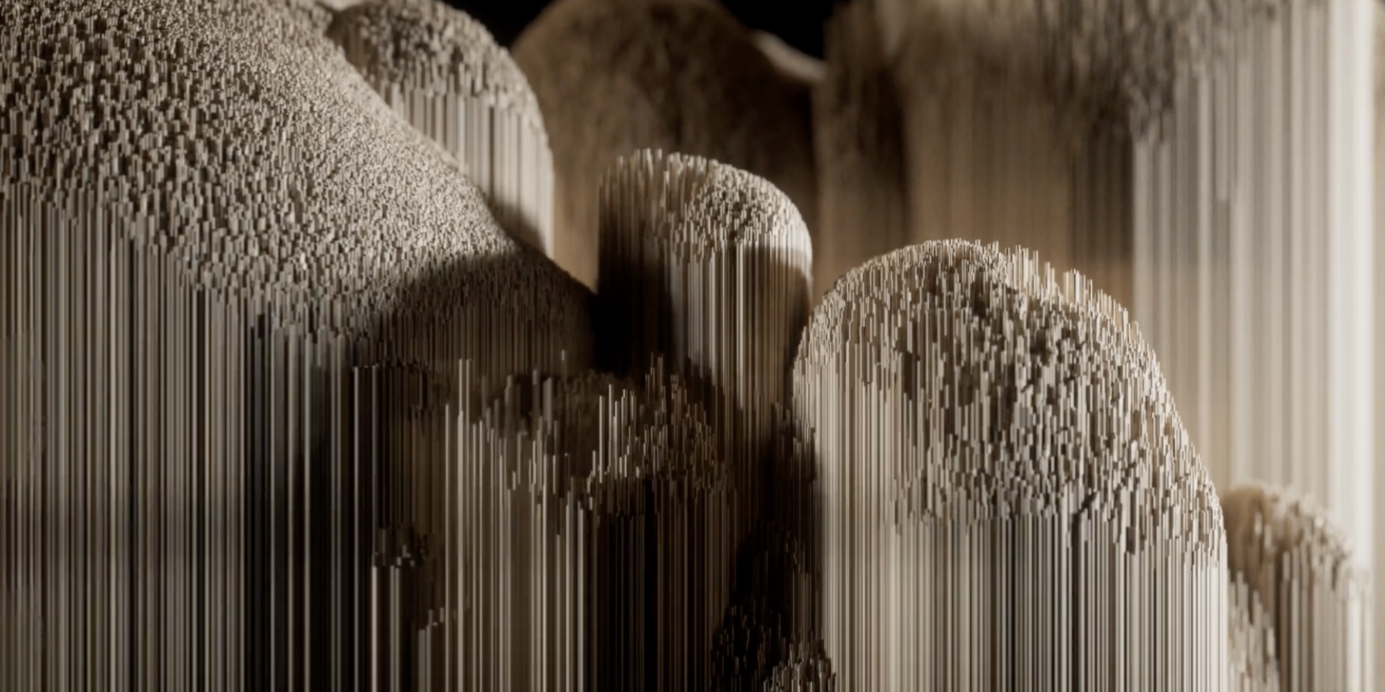 ‘Dunes is a visual symphony that evolves over time through a flocking behavior. This point cloud is a representation of us moving through our lives.’—@Sholmedal